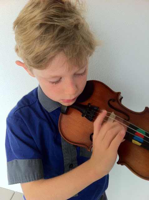 He's a bit frustrated as they don't get their bows until next term..... so they are only plucking the strings at this stage. They haven't learnt anything yet, just how to hold it and pluck any string... but that hasn't stopped him furiously practising every moment he can.